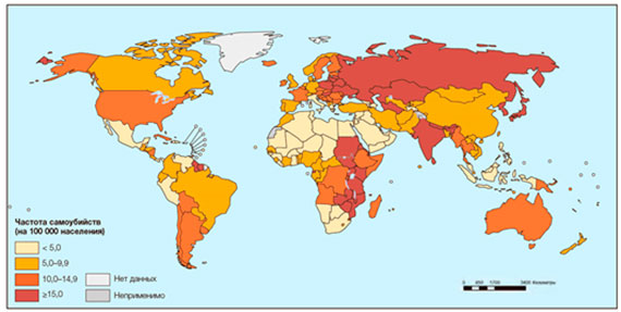 наблюдается высокий уровень смертности от самоубийств в глобальном