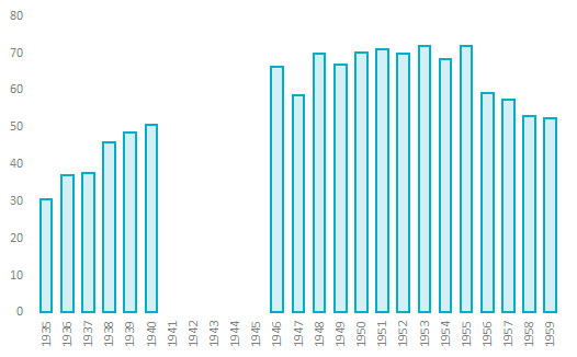 оставалось очень высоким вплоть до отмены запрета в 1955 году, приближаясь