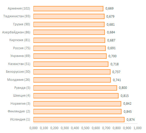 и Исландия, последняя занимает первую строчку восемь