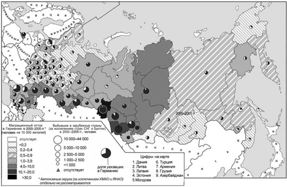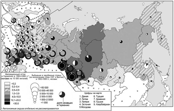 географией выезда (эмигрантов привлекают в основном Германия, Израиль,