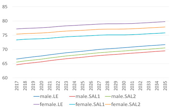 Ожидаемая продолжительность жизни в медианном возрасте*