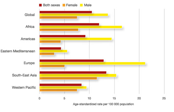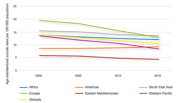 о смертности от самоубийств из Глобальных оценок здоровья ВОЗ за