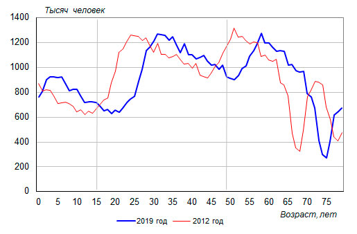 Российской Федерации по полу и возрасту на 1 января 2019 года /