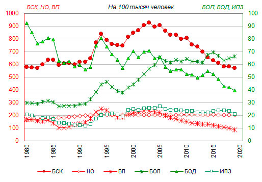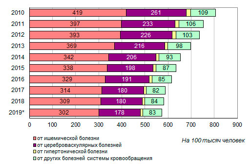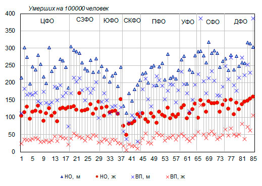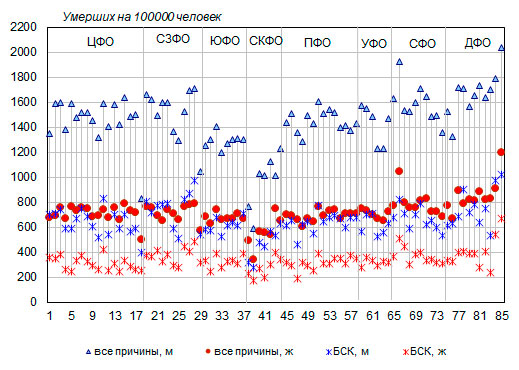 системы кровообращения варьировалась от 279 умерших на 100 тысяч