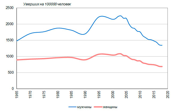 | Смертность от внешних причин оказалась самой низкой с 1980 года - 87 умерших на 100 тысяч человек
