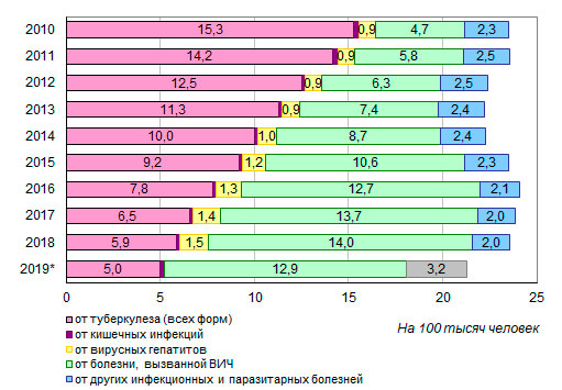 половины умерших от инфекционных и паразитарных заболеваний, в том
