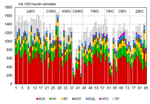 на 100 тысяч человек. Помимо Кемеровской области высокая смертность