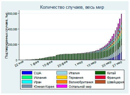 мире и в 10 странах с наибольшим количество случаев на 27 марта