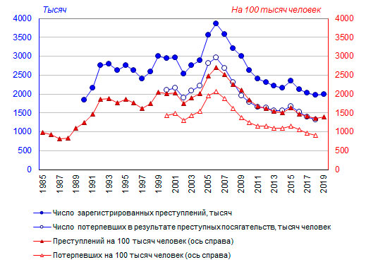начиная с 1991 года. В 2019 году общий уровень преступности повысился