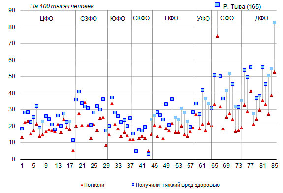 Помимо Калмыкии, доля погибших или получивших тяжкий вред здоровью