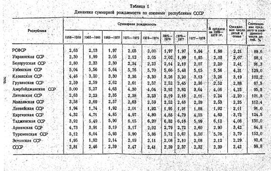суммарной рождаемости, колебалось по Советскому Союзу весьма значительно.