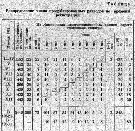 повторной регистрации развода по числу месяцев, прошедших со времени
