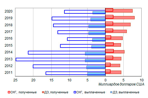 миллиарда долларов США в страны дальнего зарубежья (-13%). Личные переводы поступают и в Россию из других стран,