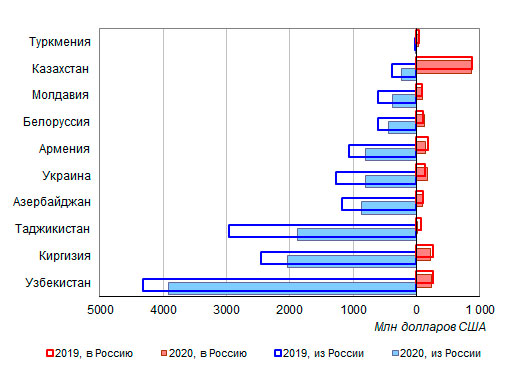 (Дата обращения: 19 апреля 2021 года) В 2020 году снизились объемы личных переводов из России