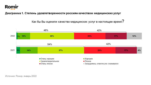 отечественной медициной (42% - 2021 vs 37% - 2002) за счет роста