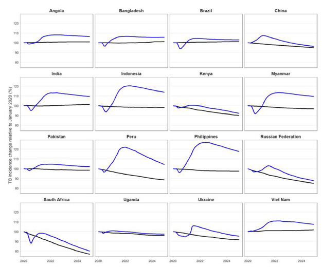 туберкулезом. Черной линией обозначен базовый уровень, предполагающий