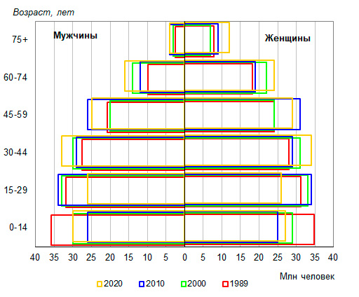 и возрасту, миллионов человек на дату Всесоюзной переписи населения