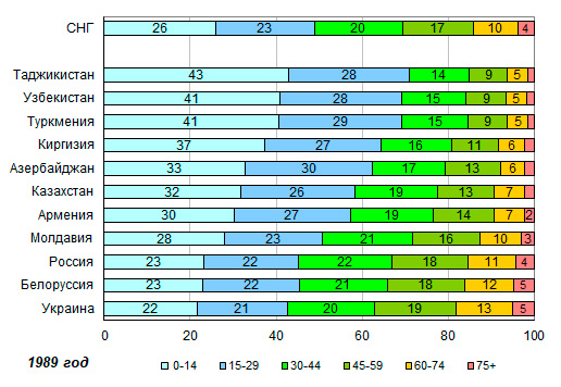 всего, в республиках Средней Азии). Поэтому доля молодежи этих стран