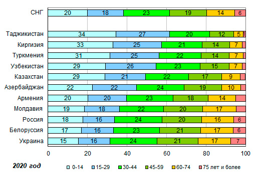 из союза). Если в населении СНГ доля детей в возрасте до 15 лет