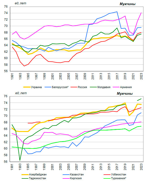 жизни мужчин при рождении составляла от 67 лет в Туркмении, Молдавии
