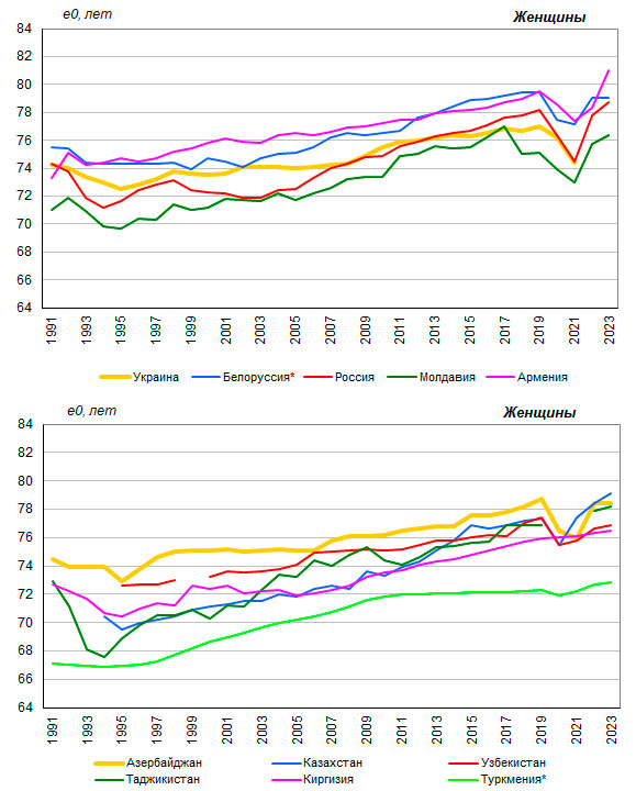 то в 2023 году – от 70 лет в Туркмении и на Украине[12]