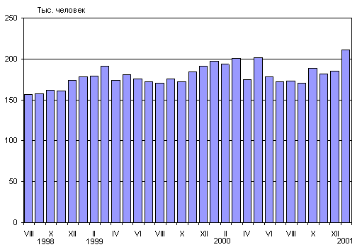 на год), но затем стал снижаться. В январе 2001 года число умерших