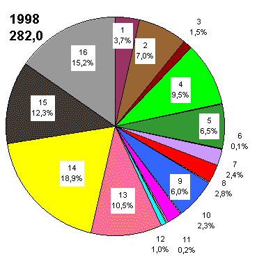 14 - самоубийства; 15 - убийства 16 - неуточненные повреждения.