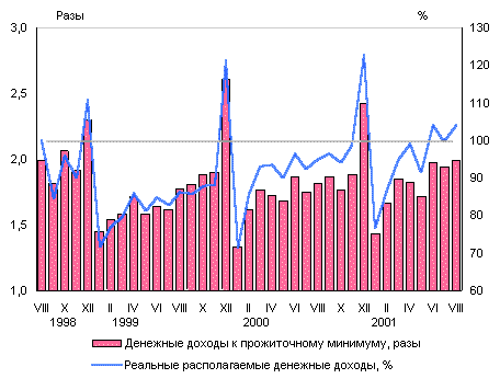 Летом 2001 года реальные денежные доходы россиян превысили