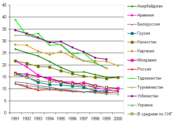 в начале 90-х годов значение этого показателя ниже уровня, обеспечивающего