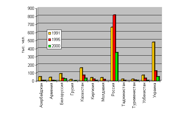К концу десятилетия несколько сократилась эмиграция за пределы бывшего