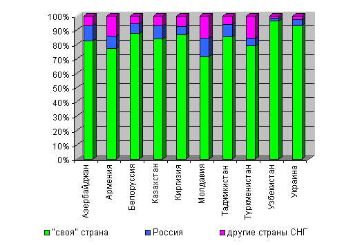 Рис. 6. Распределение мигрантов в странах СНГ по территории