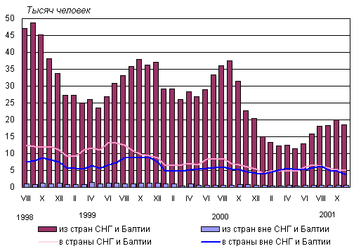 за тот же период 2000 года. Эмиграция в страны СНГ и Балтии уменьшилась