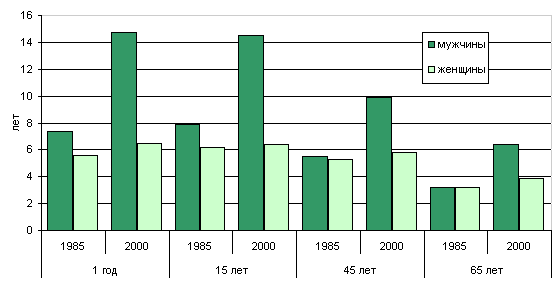 предстоящей жизни мужчин и женщин в 2000 году была в молодых возрастах