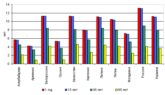 Казахстане и Украине, наименьших - в странах Закавказья. В возрасте