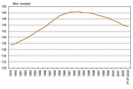 Федерации на 1 июля 2002 года насчитывало 143,5 миллиона человек.