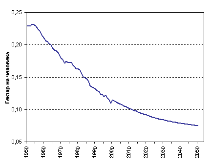 на душу населения будет приходиться 1,14 га пахотных земель15.