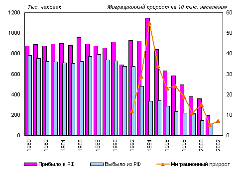 Рисунок 10. Миграционный прирост населения России, 1980-2002