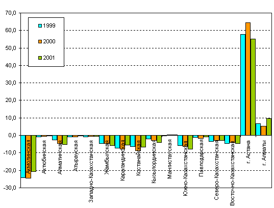 Казахстана в 1999-2001 годах (тысяч человек) Все области Казахстана
