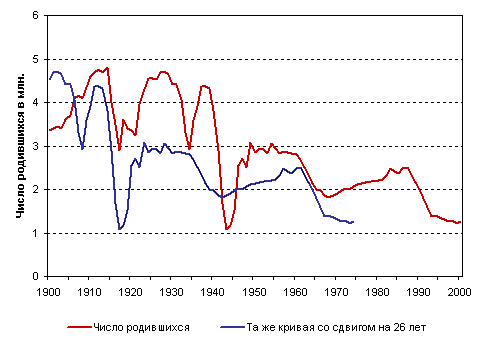 Рисунок 1. Числа родившихся в России. 1900-2000