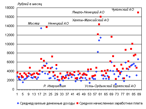 Москва выделяется высокими денежными доходами, а газодобывающие