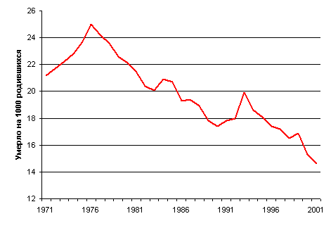 Рисунок 3. Младенческая смертность в России, 1971-2001