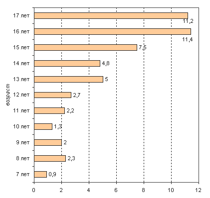 10-летнего возраста: 45,5% опрошенных данной возрастной группы бродяжничали