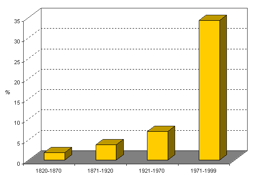 За 180 лет, с 1820 по 1999 год (т.е. период, за который