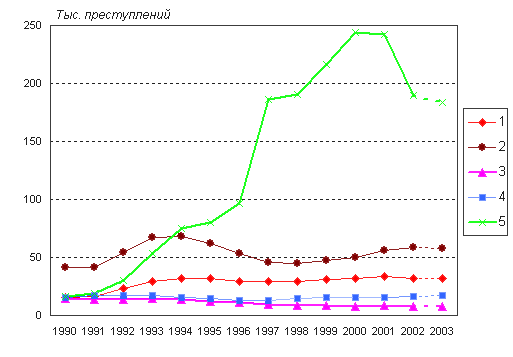 составляют заметную долю в общем числе преступных деяний: в 2002