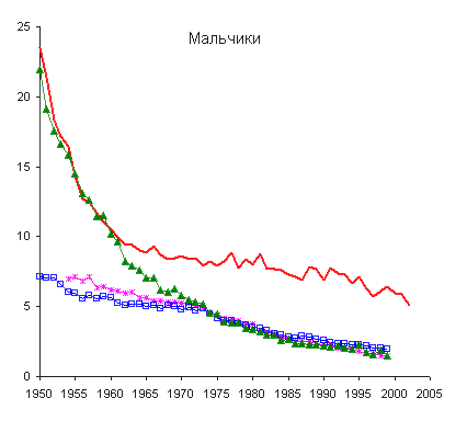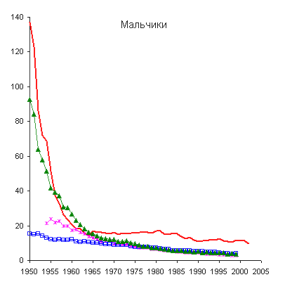 и Японии, уровень смертности мальчиков в возрасте до 1 года был