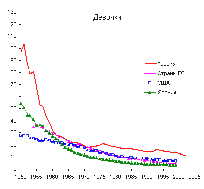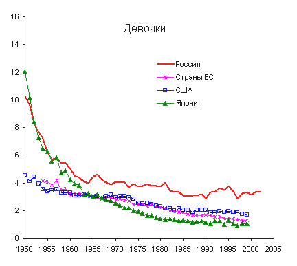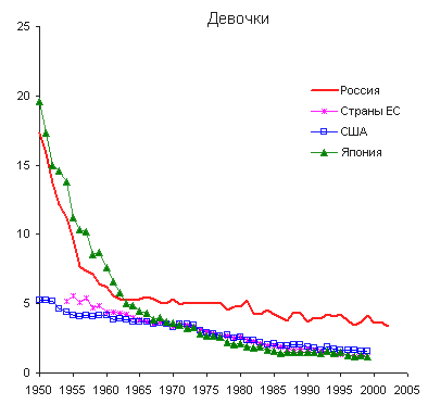 и девочек после 1990 г. были меньшими, чем в возрасте 0 лет: в России