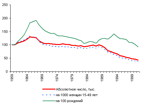 быстрое сокращение числа абортов в 90-е годы (см. рисунок). В 1990