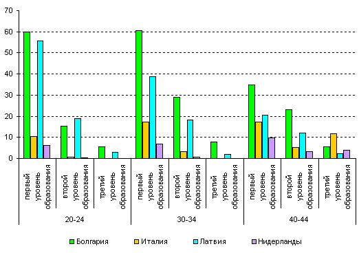 составляла 9,8%, а в Болгарии - 34,8%, то в когорте 20-24 лет -
