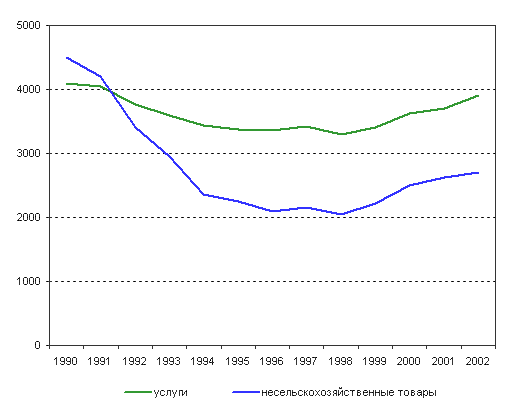 в этом секторе был лишь на 4% меньше, чем в 1990 году. Ясно, что