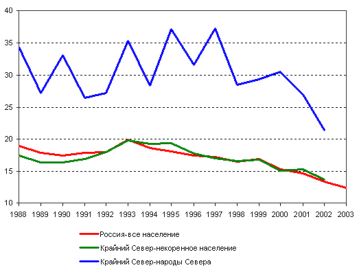 1988-1989 годы у народов Севера она была равна 60 годам10, на 10